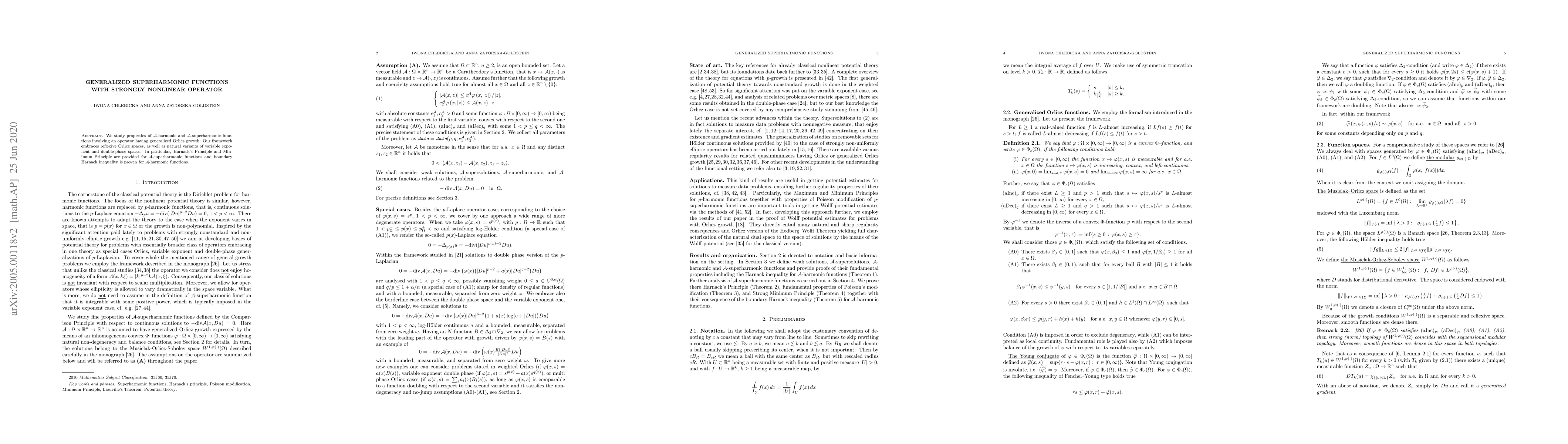 This paper investigates properties of generalized superharmonic functions with a strongly nonlinear operator, including Harnack's Principle and Minimum Principle for $ heta$-superharmonic functions and boundary Harnack inequality for $ heta$-harmonic functions.