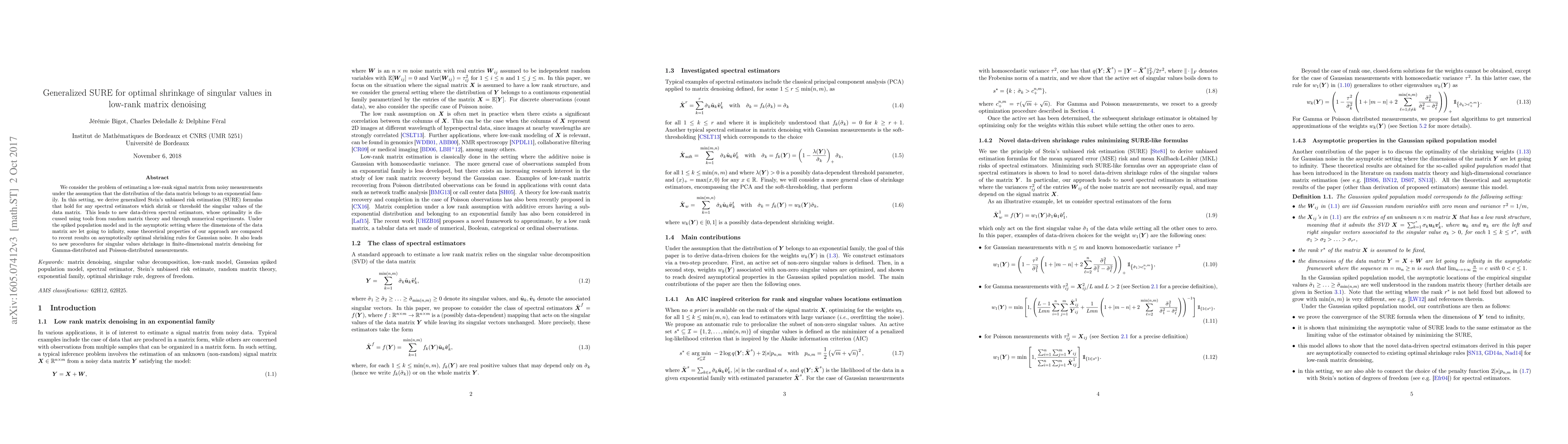 This paper develops generalized SURE formulas for optimal shrinkage of singular values in low-rank matrix denoising, leading to new data-driven spectral estimators. Theoretical properties and numerical experiments compare these methods to recent optimal shrinking rules under the spiked population model.