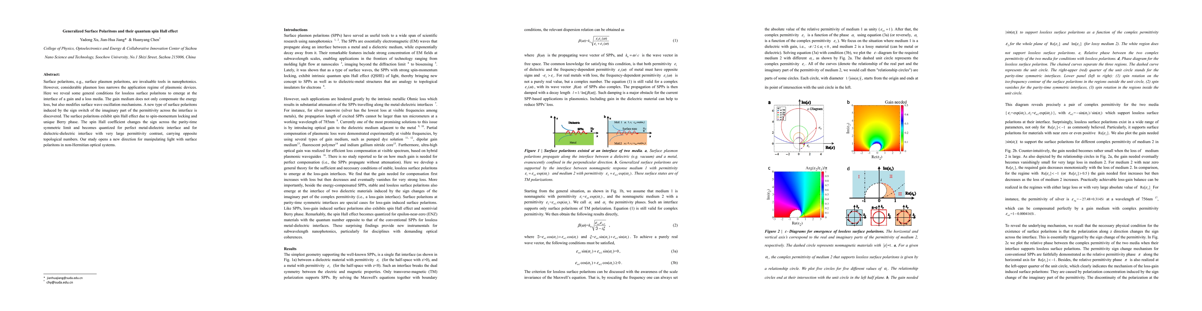 This paper explores the emergence of lossless surface polaritons at the interface between gain and loss media, revealing a new type of polaritons with a quantum spin Hall effect due to spin-momentum locking and unique Berry phase. The study highlights the potential for manipulating light in non-Hermitian optical systems.