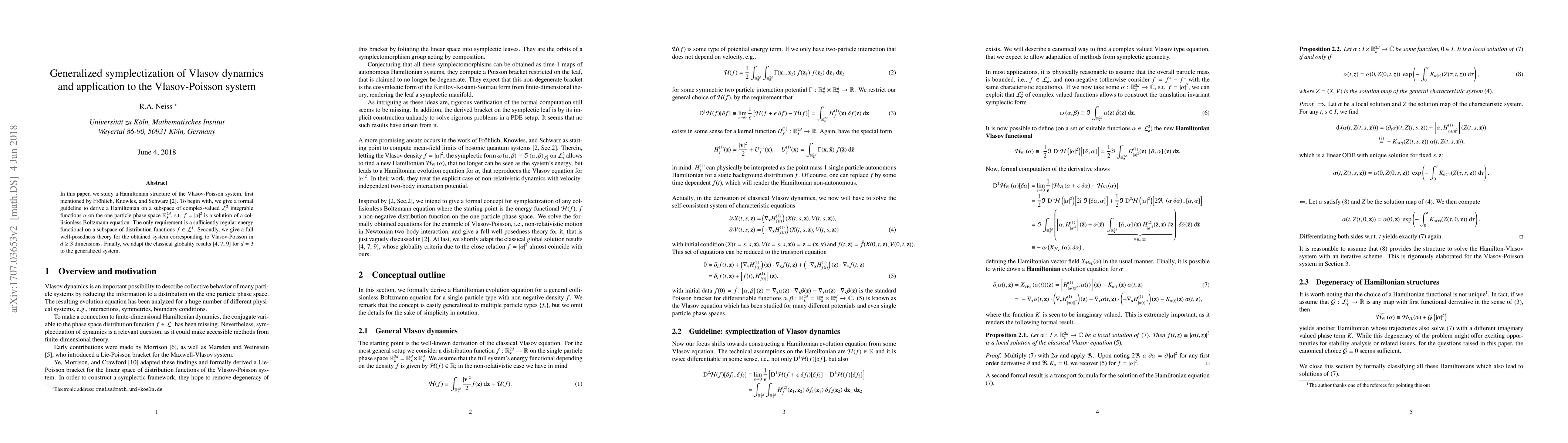 This paper explores a Hamiltonian structure of the Vlasov-Poisson system, deriving a Hamiltonian for complex-valued L^2 integrable functions on phase space. It establishes a well-posedness theory for this system in dimensions d≥3 and adapts globality results for d=3, providing a formal guideline with a regular energy functional as the only requirement.