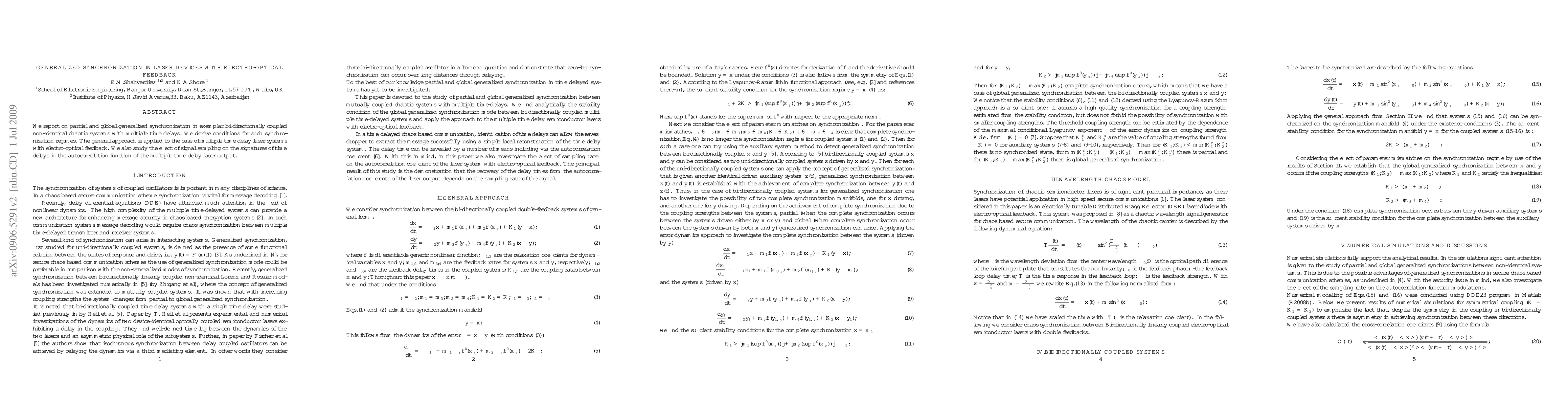 This paper investigates generalized synchronization in bidirectionally coupled non-identical chaotic systems, focusing on multiple time delay laser systems with electro-optical feedback. It derives conditions for synchronization and examines the impact of signal sampling on time delay signatures in the laser output's autocorrelation function.