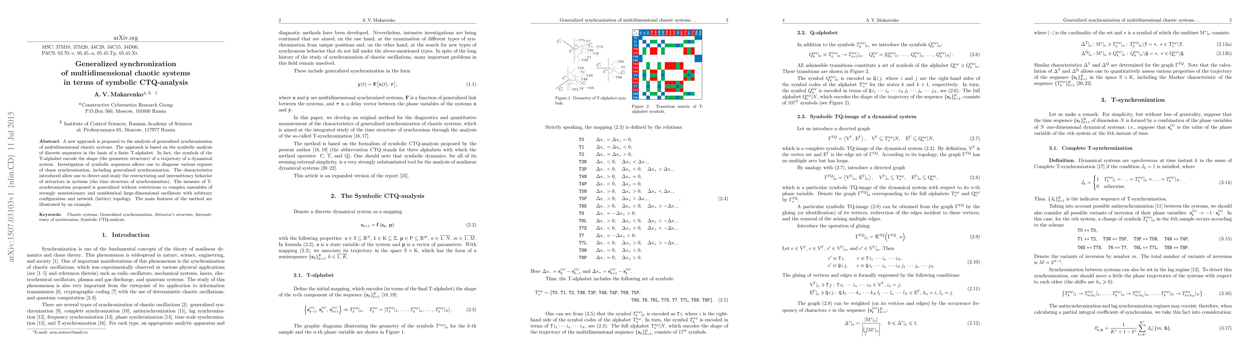 This paper proposes a novel symbolic analysis method for generalized synchronization in multidimensional chaotic systems, using a finite T-alphabet to encode trajectory shapes. The approach diagnoses synchronization regimes and studies attractor restructuring, applicable to complex, nonstationary, and nonidentical oscillator ensembles.