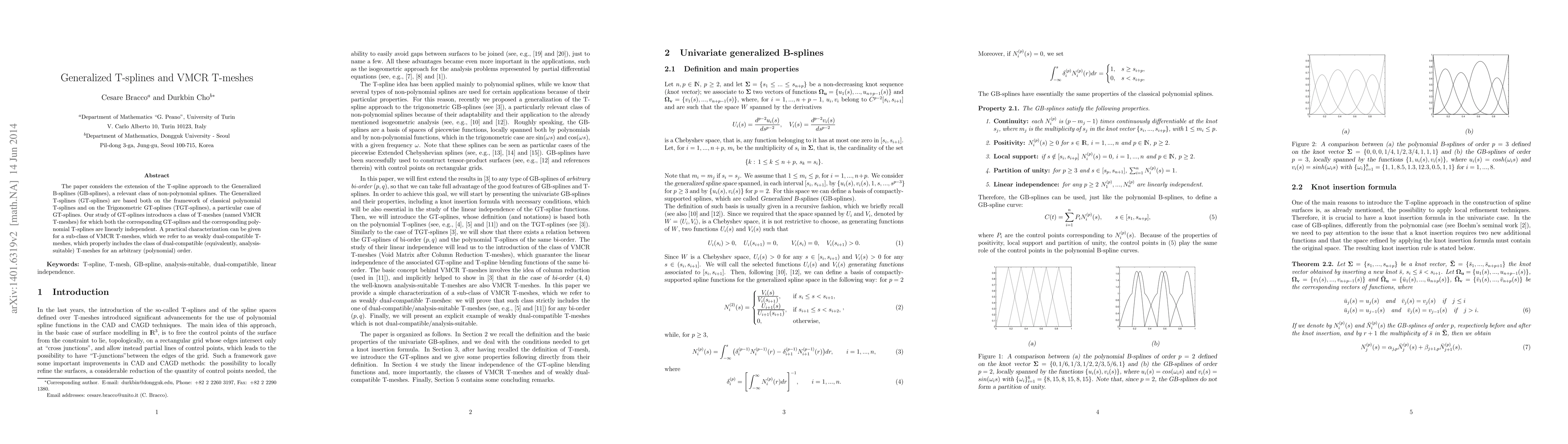 The paper extends T-splines to Generalized T-splines (GT-splines), integrating both classical polynomial and trigonometric variants. It introduces VMCR T-meshes where both GT-splines and polynomial T-splines remain linearly independent, with a focus on weakly dual-compatible T-meshes.