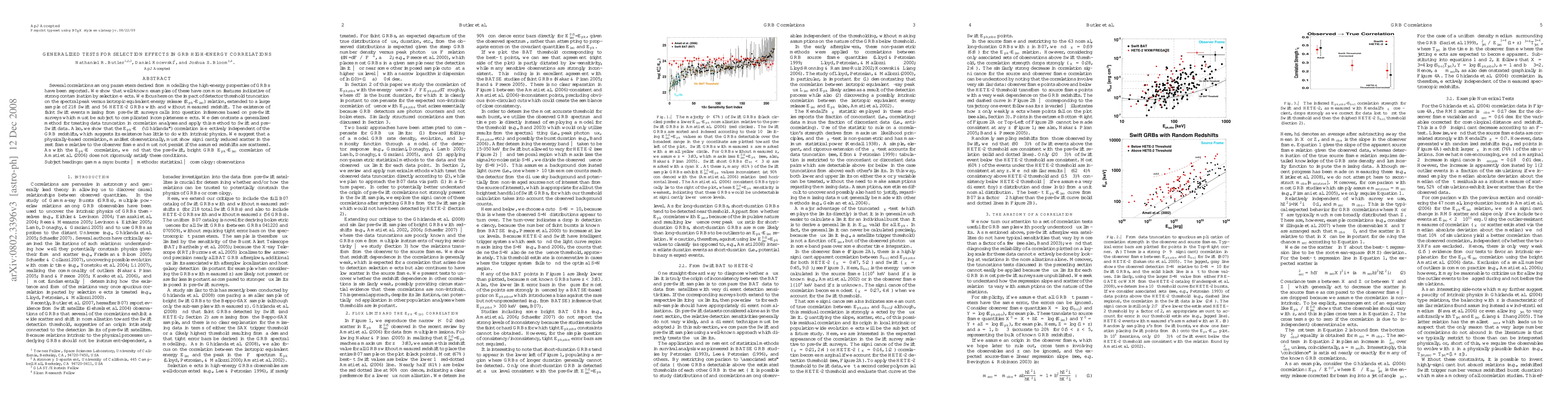 Researchers found that correlations among GRB high-energy properties may be due to selection effects caused by detector threshold truncation, rather than intrinsic physics. They developed a new method to address this issue and applied it to data from the Swift and HETE-2 missions.