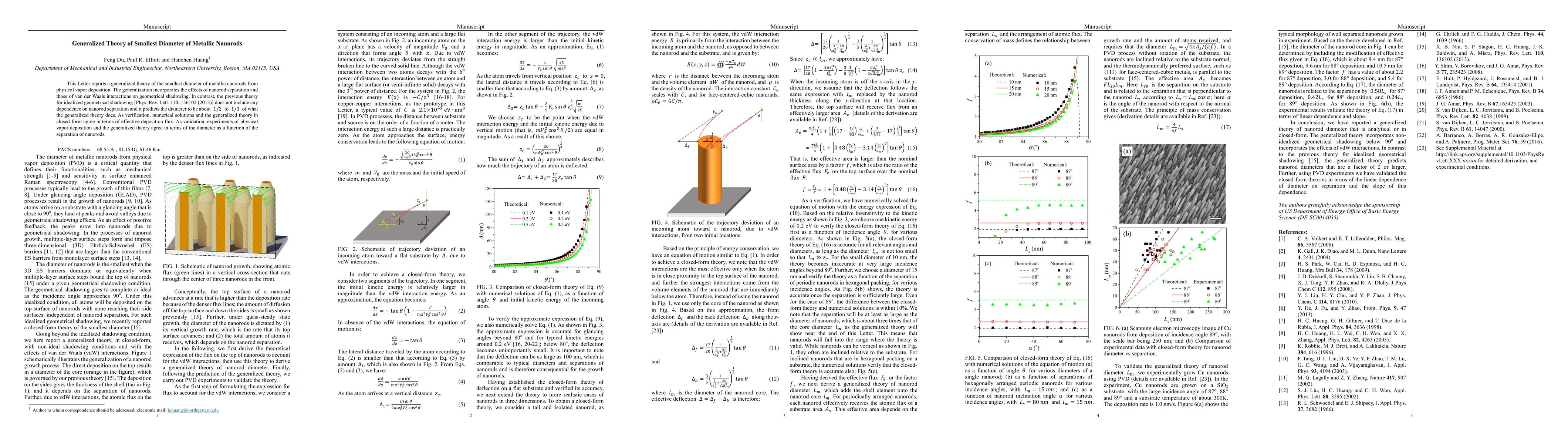 This Letter reports a generalized theory of the smallest diameter of metallic nanorods from physical vapor deposition. The generalization incorporates the effects of nanorod separation and those of van der Waals interactions on geometrical shadowing. In contrast, the previous theory for idealized geometrical shadowing [Phys. Rev. Lett. 110, 136102 (2013)] does not include any dependence on nanorod separation and it predicts the diameter to be about to of what the generalized theory does. As verification, numerical solutions and the generalized theory in closed-form agree in terms of effective deposition flux. As validation, experiments of physical vapor deposition and the generalized theory agree in terms of the diameter as a function of the separation of nanorods.