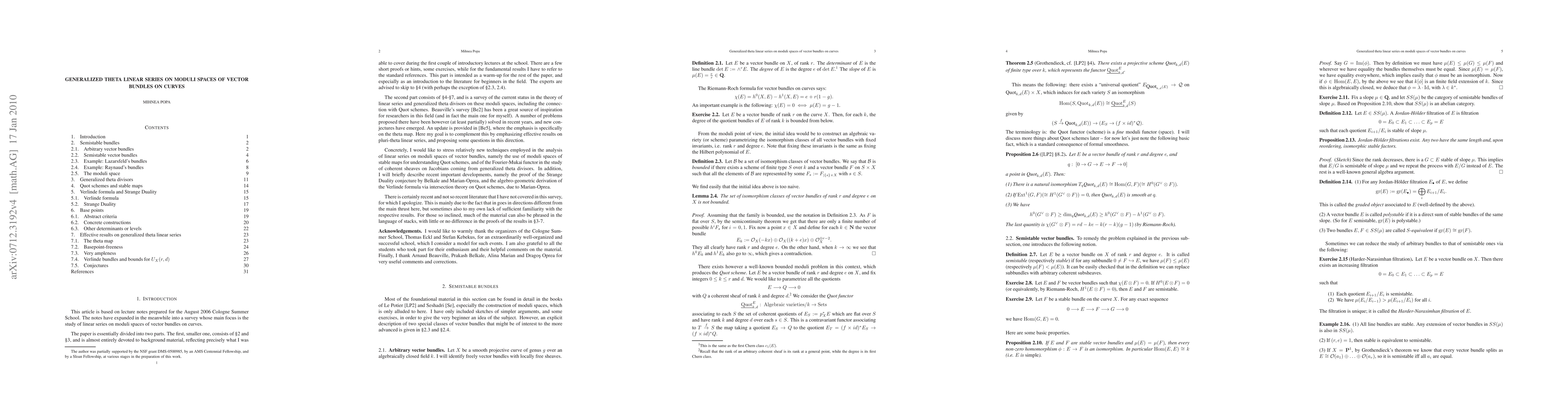 This paper provides an introduction to generalized theta linear series on moduli spaces of vector bundles on curves, reviewing foundational concepts and current research, while highlighting advanced techniques like moduli spaces of stable maps and Fourier-Mukai transforms. It also mentions the proof of the Strange Duality conjecture by Belkale and Marian-Oprea as a major recent advancement.