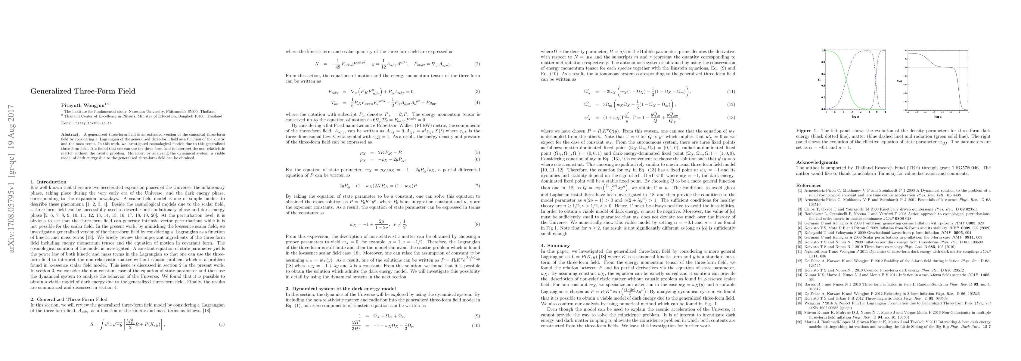 This research introduces a generalized three-form field, extending the canonical one by incorporating kinetic and mass terms into its Lagrangian. It demonstrates that this field can represent non-relativistic matter without caustic issues, and further reveals a dynamical system approach to model dark energy viable for this generalized field.