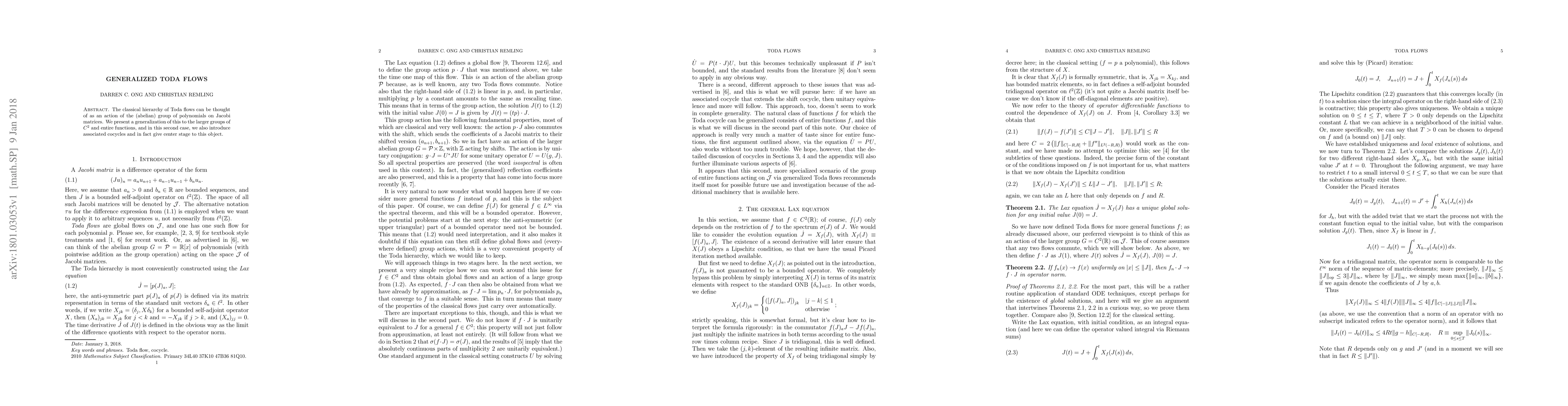 This paper generalizes the classical Toda flows by extending the action from abelian groups of polynomials to broader classes including $C^2$ and entire functions, introducing cocycles in the latter case and emphasizing these new objects.