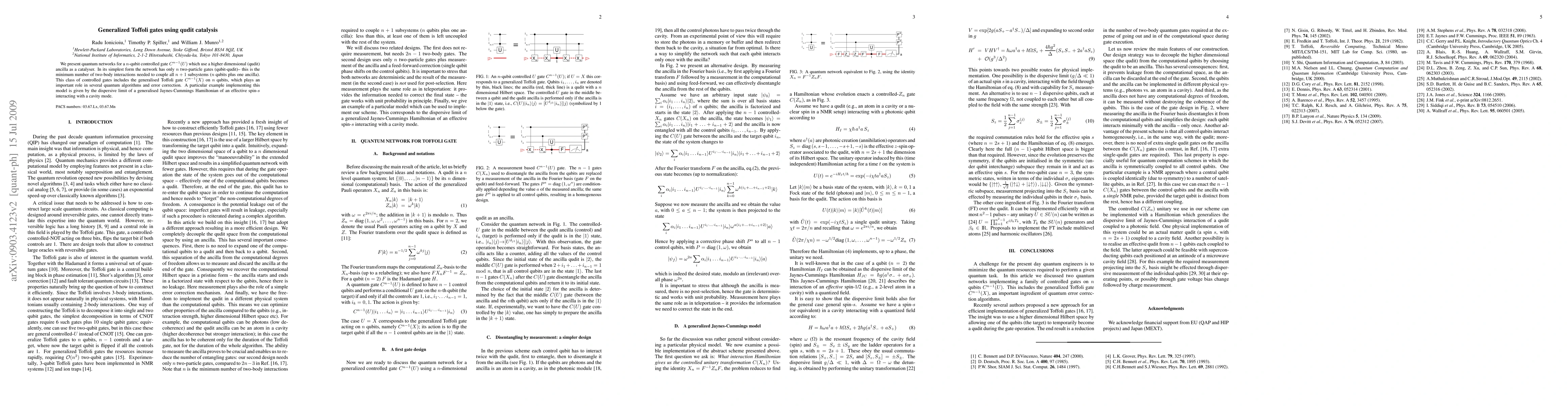 This paper proposes quantum networks utilizing higher dimensional qudits as catalysts to implement generalized Toffoli gates with minimal n two-particle qubit-qudit interactions. The model includes a specific example based on the dispersive limit of a generalized Jaynes-Cummings Hamiltonian.