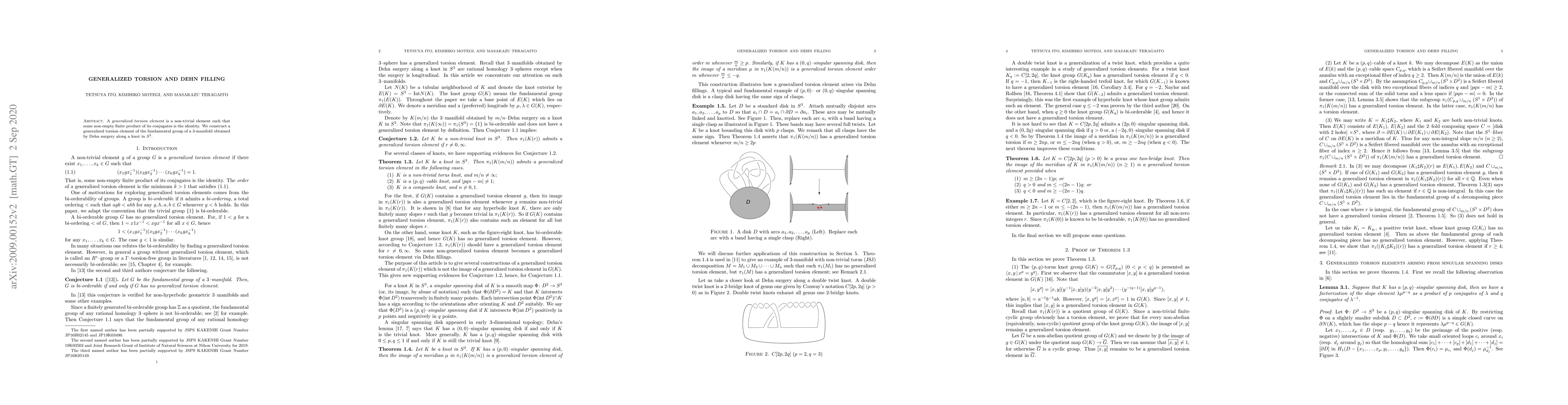 Summary: This paper constructs a generalized torsion element in the fundamental group of a 3-manifold formed via Dehn surgery on a knot in the 3-sphere, demonstrating that some non-trivial finite product of its conjugates equals the identity. The study explores the implications of such torsion elements in the context of 3-manifold topology.
