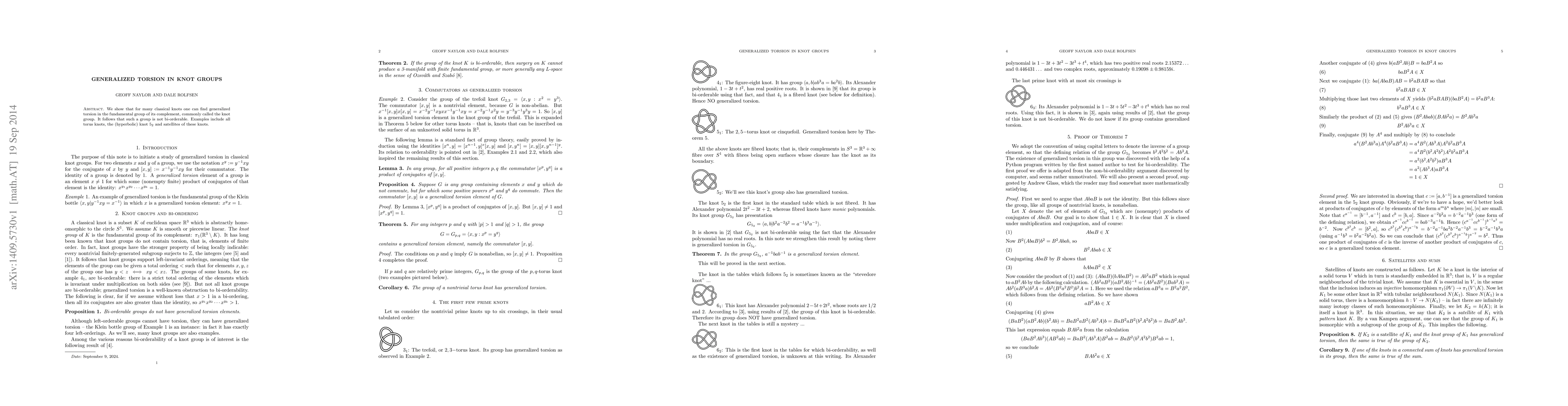 We show that for many classical knots one can find generalized torsion in the fundamental group of its complement, commonly called the knot group. It follows that such a group is not bi-orderable. Examples include all torus knots, the (hyperbolic) knot $5_2$ and satellites of these knots.