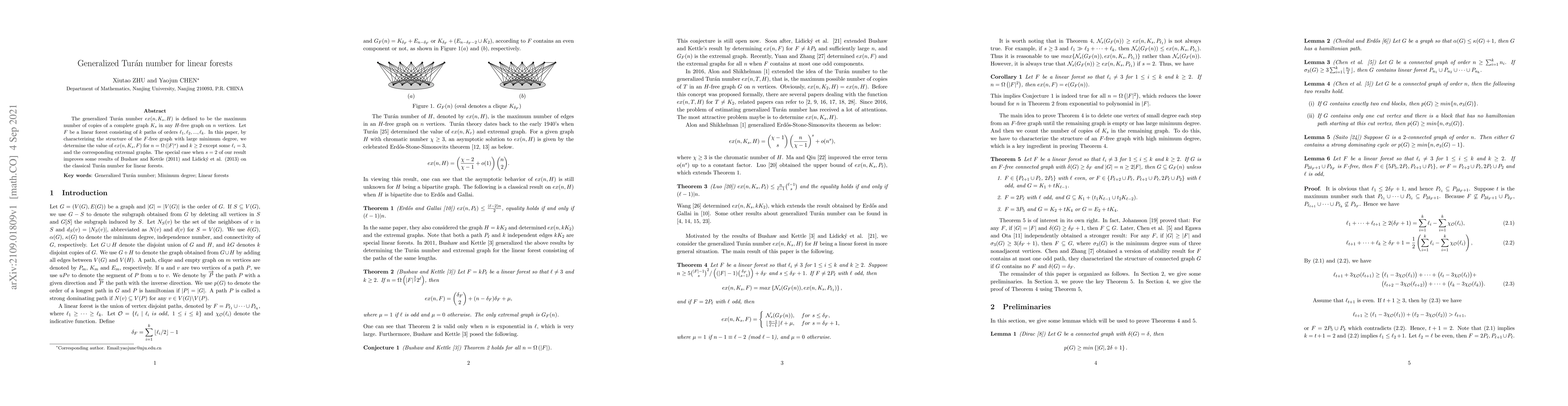 This paper determines the generalized Turán number $ex(n,K_s,F)$ for linear forests $F$ by analyzing $F$-free graphs with large minimum degree, yielding new results for $n=\Omega\left(|F|^s\right)$ and improving upon previous work for $s=2$.