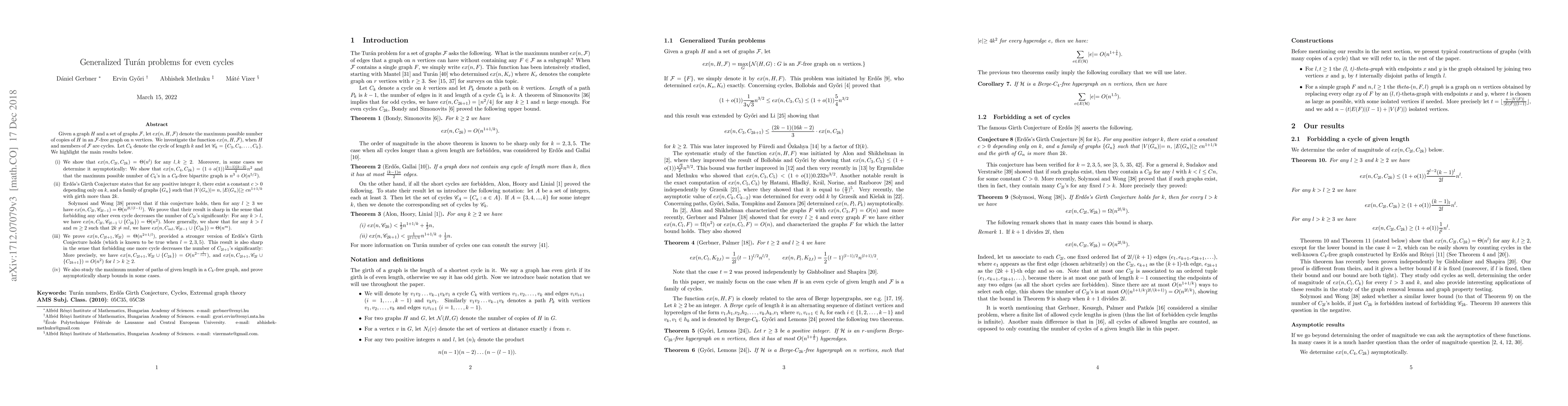 Researchers investigate generalized Turan problems for even cycles, finding that certain cycle combinations have specific asymptotic bounds on their maximum number of copies in a graph.