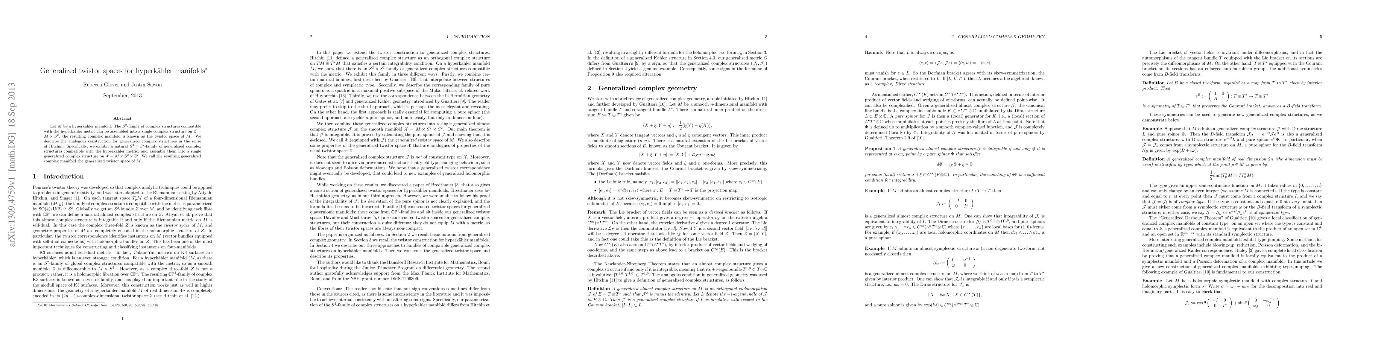 This paper constructs the generalized twistor space for hyperkähler manifolds by integrating an S^2-family of generalized complex structures compatible with the hyperkähler metric into a single generalized complex structure on X=MxS^2xS^2, extending the traditional twistor space concept.