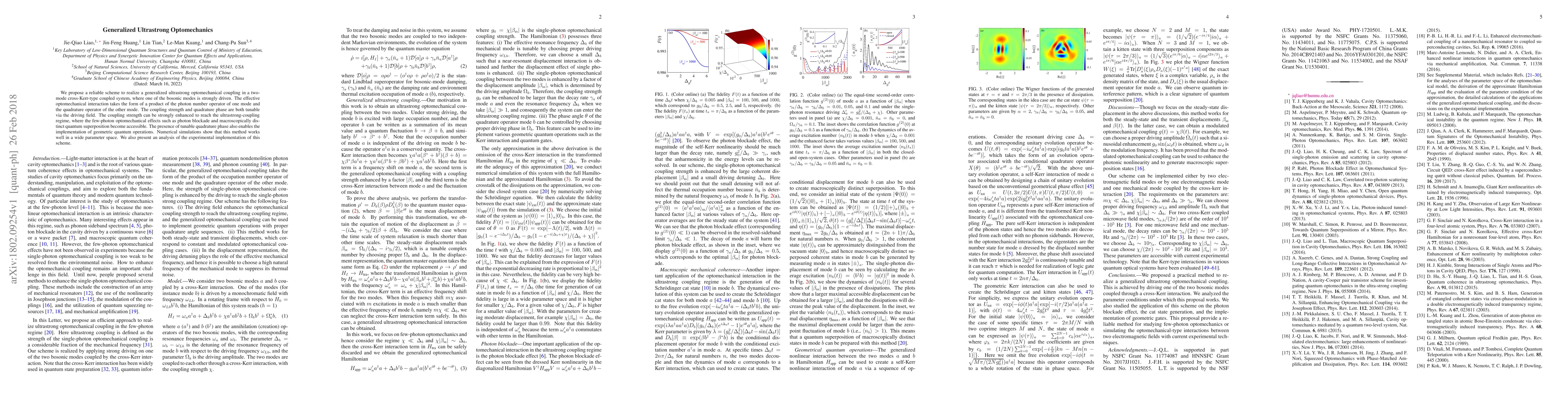 This paper proposes a scheme for achieving generalized ultrastrong optomechanical coupling in a cross-Kerr-type system, where tunable coupling strength and phase enable few-photon quantum effects and geometric quantum operations. Numerical simulations confirm its feasibility across a broad parameter range, and an analysis of experimental implementation is provided.