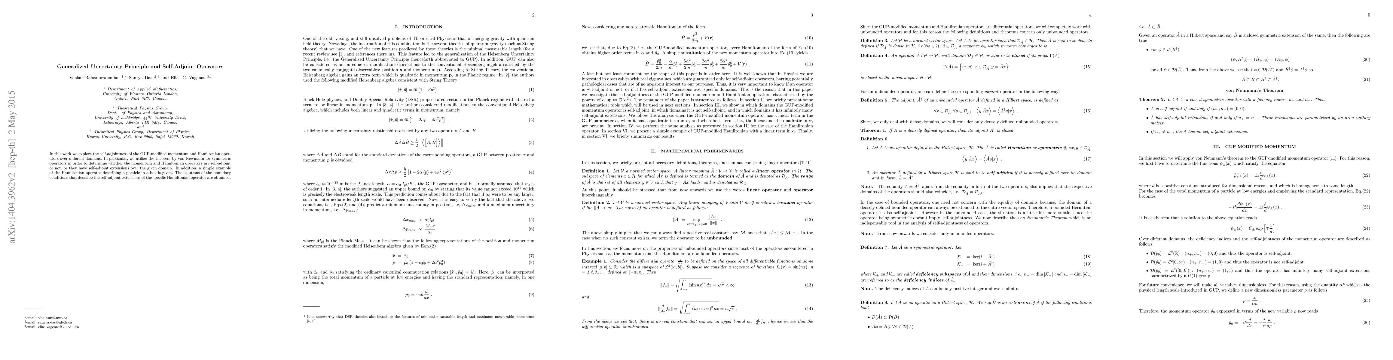This paper investigates the self-adjointness of Generalized Uncertainty Principle (GUP) modified momentum and Hamiltonian operators using von-Neumann's theorem for symmetric operators. It also provides a simple example of a Hamiltonian operator for a particle in a box, determining the self-adjoint extensions through boundary condition solutions.