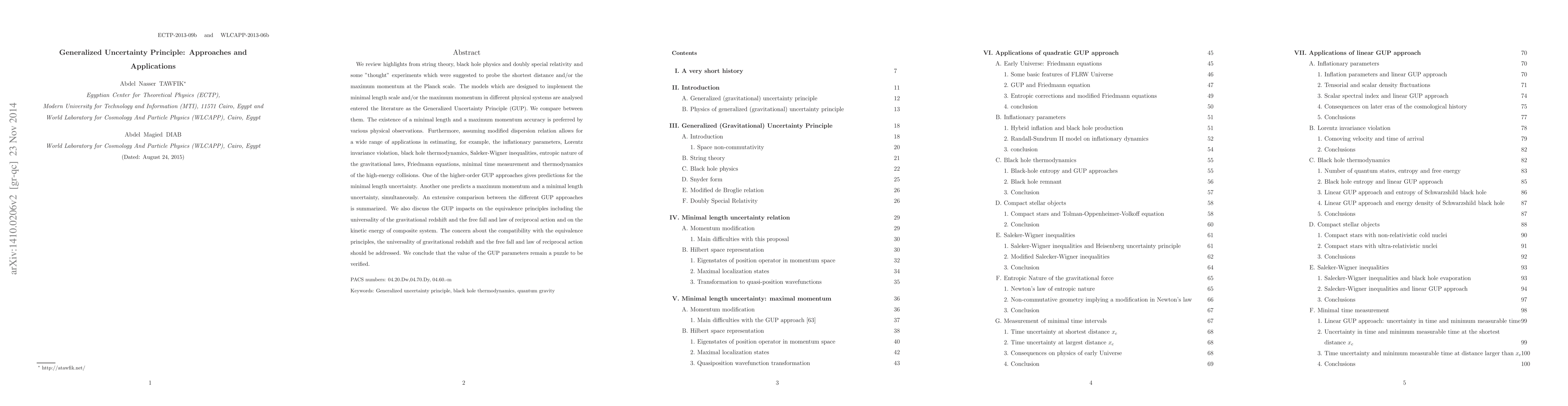 Research explores the Generalized Uncertainty Principle (GUP), which proposes a minimal length scale and/or maximum momentum at the Planck scale, with implications for physics observations, inflationary parameters, black hole thermodynamics, and the universality of gravitational laws.