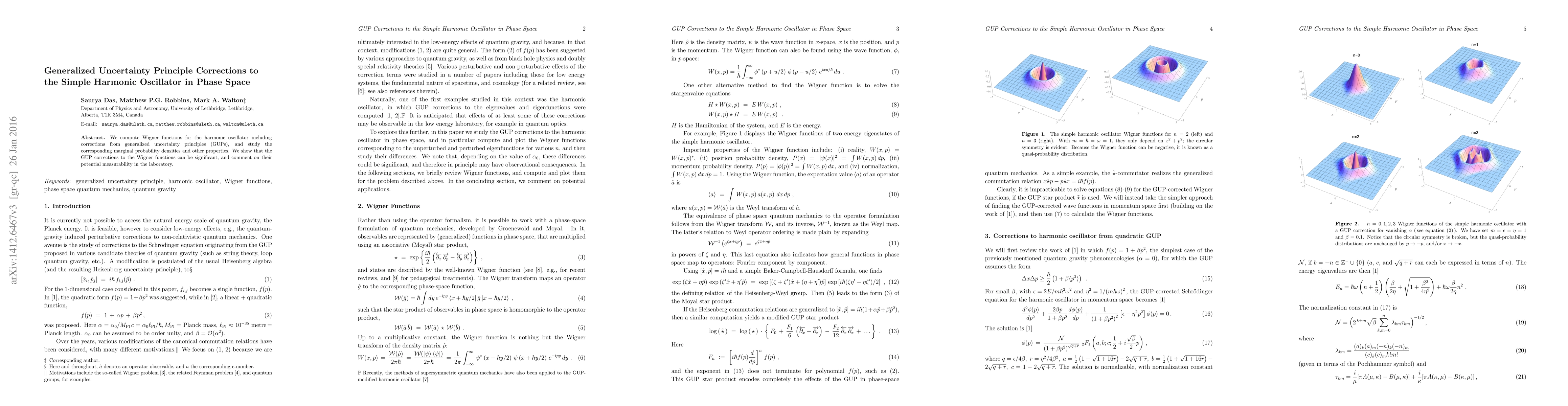 Researchers computed Wigner functions for a harmonic oscillator with generalized uncertainty principle corrections, finding significant effects on probability densities and potential measurability in the lab.