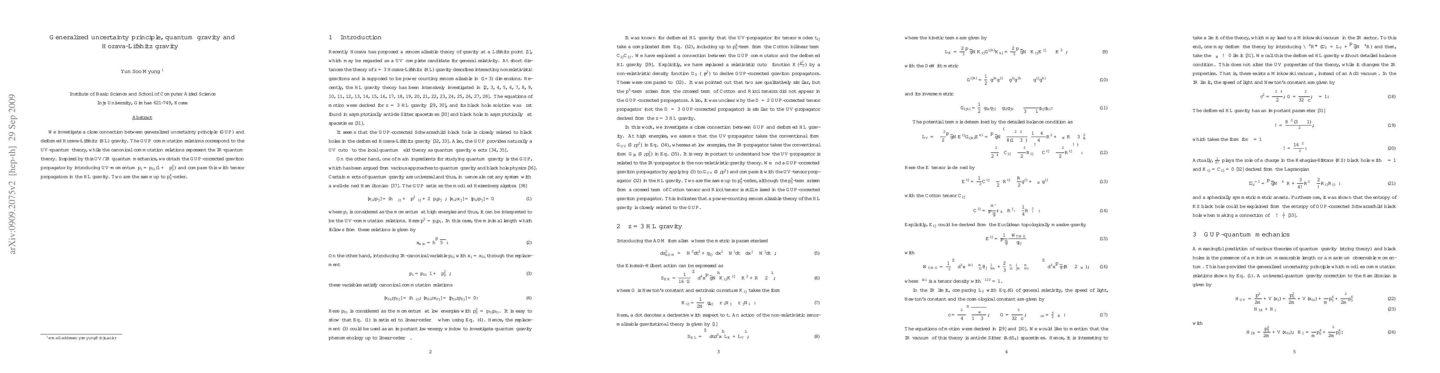 This paper explores the relationship between the generalized uncertainty principle (GUP) and Hořava-Lifshitz (HL) gravity, showing that GUP-corrected graviton propagators align with HL gravity tensor propagators up to $p_0^4$-order, suggesting a unified quantum theory at both UV and IR scales.