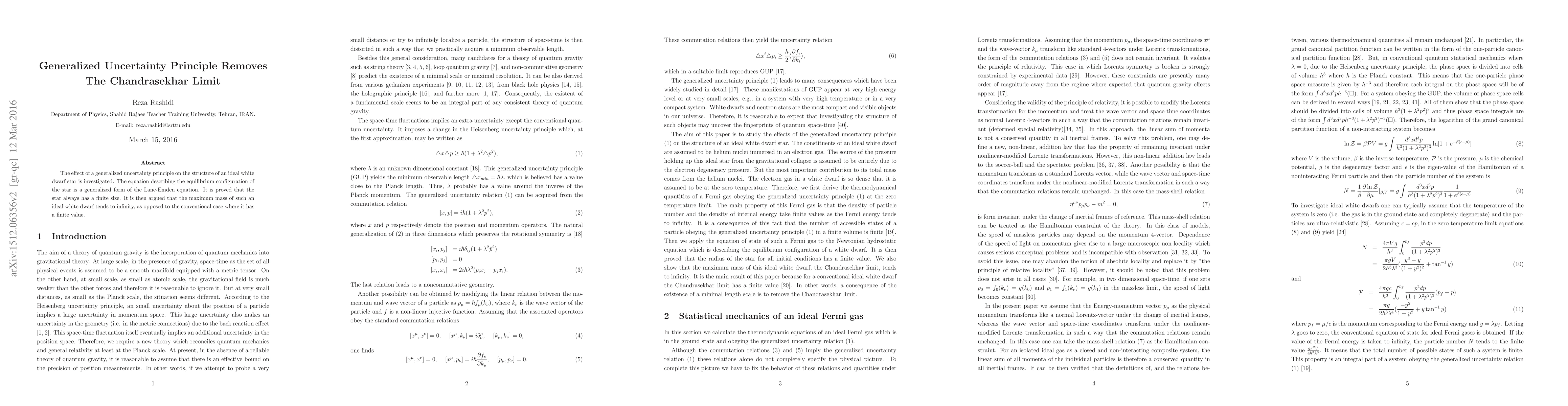 The effect of a generalized uncertainty principle on the structure of an ideal white dwarf star is investigated. The equation describing the equilibrium configuration of the star is a generalized form of the Lane-Emden equation. It is proved that the star always has a finite size. It is then argued that the maximum mass of such an ideal white dwarf tends to infinity, as opposed to the conventional case where it has a finite value.