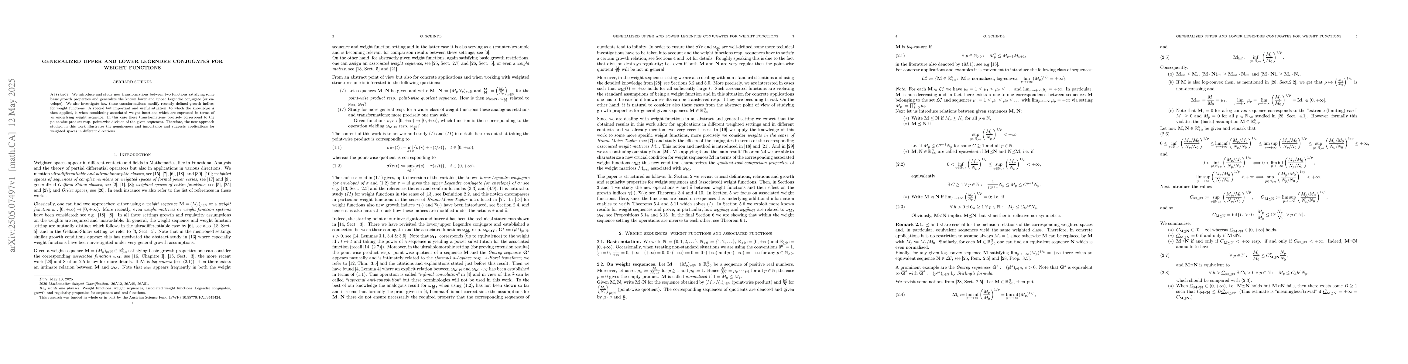 The development of generalized Legendre conjugates and their analysis in the context of growth indices for weight functions.