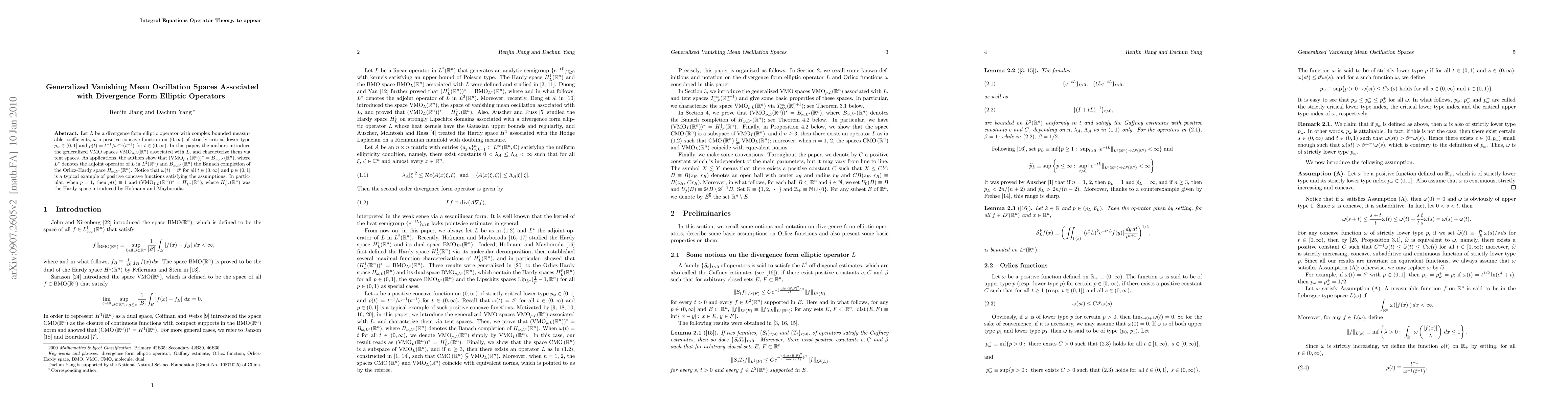 Researchers introduce generalized VMO spaces associated with divergence form elliptic operators, showing a connection to Orlicz-Hardy spaces and Hardy spaces in the case of critical lower type $p=1$.