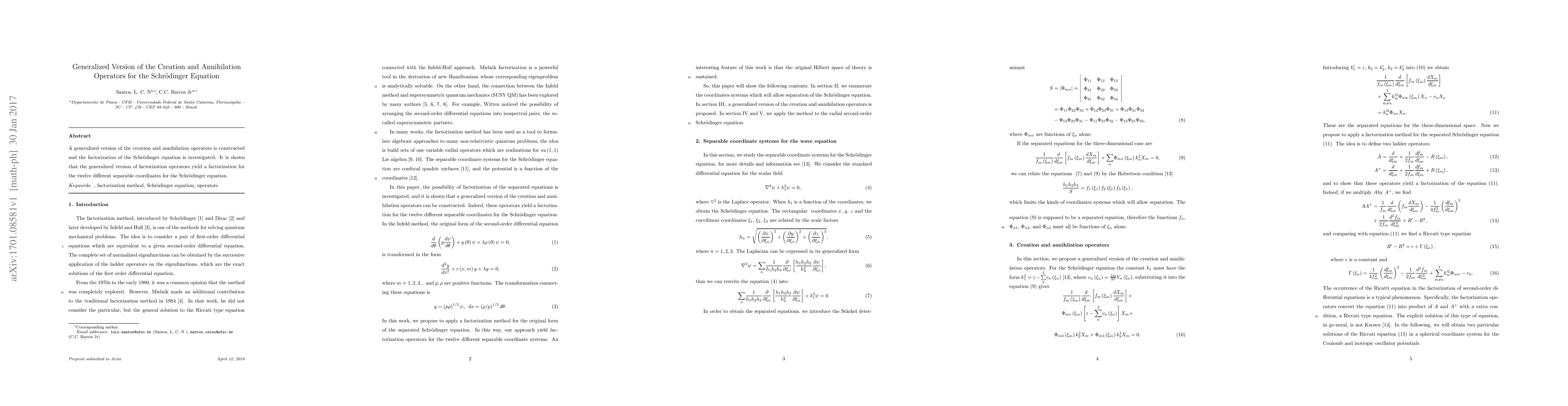 Summary: This paper constructs generalized creation and annihilation operators to factorize the Schrödinger equation, demonstrating their effectiveness in yielding factorization for twelve distinct separable coordinates.