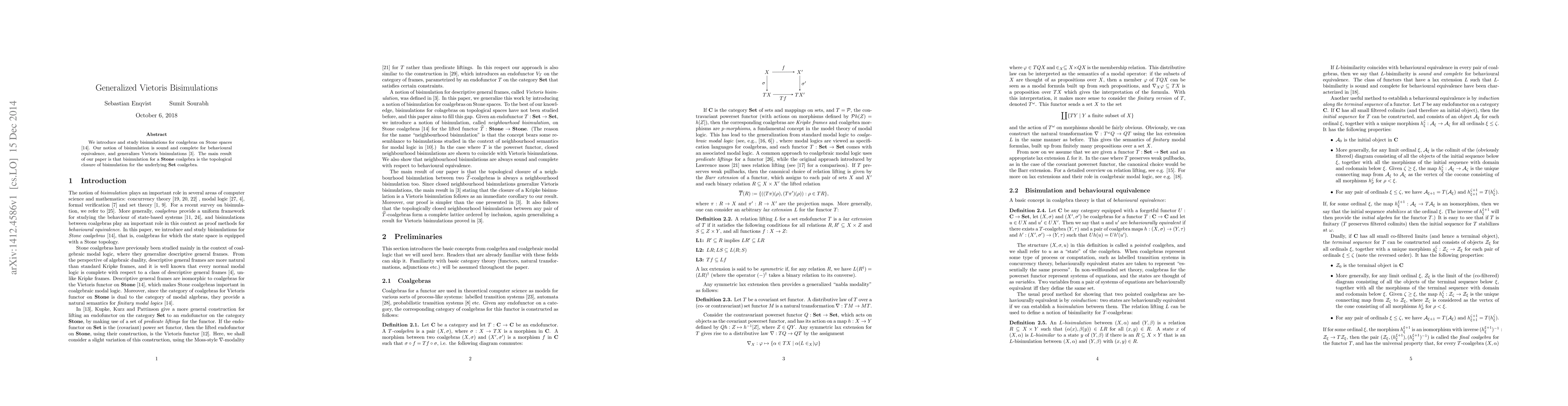 This paper proposes a generalized notion of bisimulation for coalgebras on Stone spaces, which is sound and complete for behavioral equivalence, extending Vietoris bisimulations. The key finding is that bisimulation for Stone coalgebras corresponds to the topological closure of bisimulation for the underlying set coalgebra.