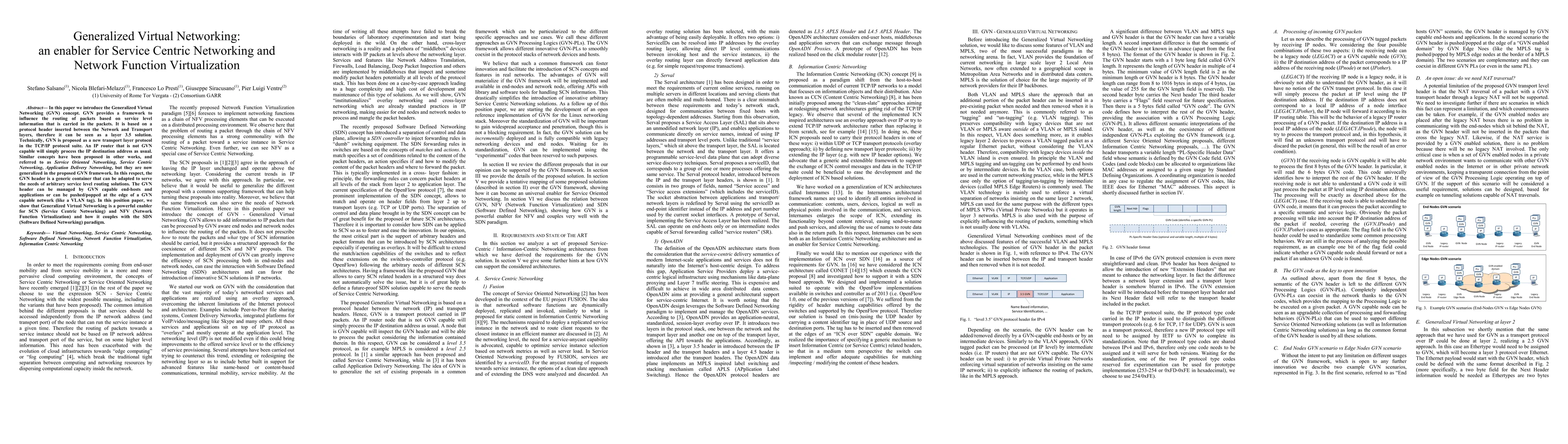This paper introduces Generalized Virtual Networking (GVN), a framework that influences packet routing based on service-level information, functioning as a layer 3.5 protocol in the TCP/IP suite. GVN is proposed as a new transport layer protocol, enabling Service Centric Networking and Network Function Virtualization, and integrating with the SDN paradigm.