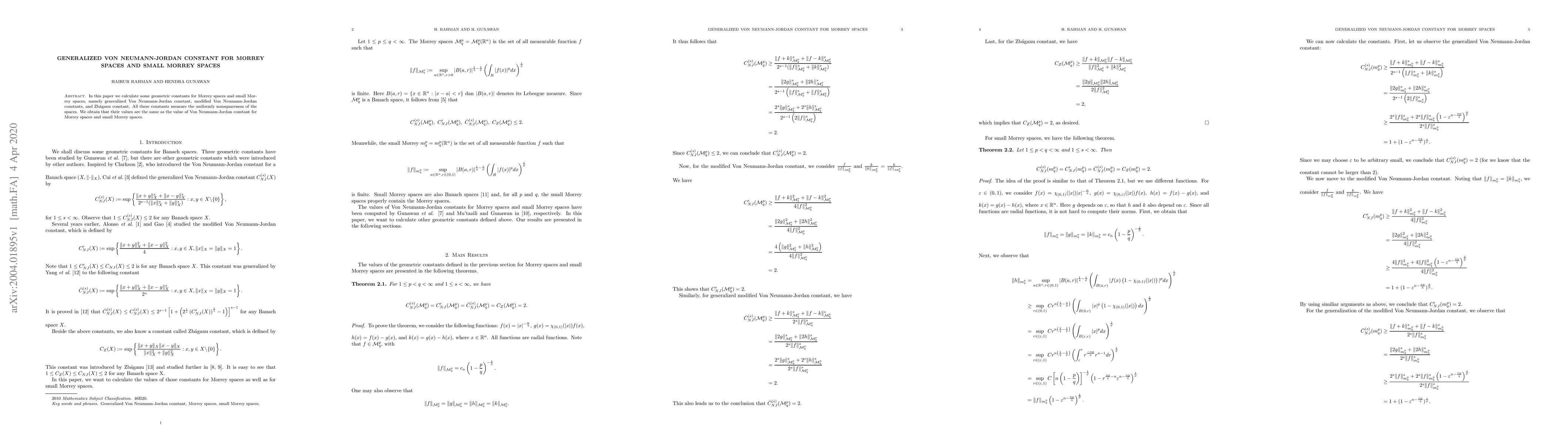 This paper calculates geometric constants for Morrey and small Morrey spaces, including the generalized Von Neumann-Jordan constant, finding they match the Von Neumann-Jordan constant for these spaces, indicating uniform nonsquareness.