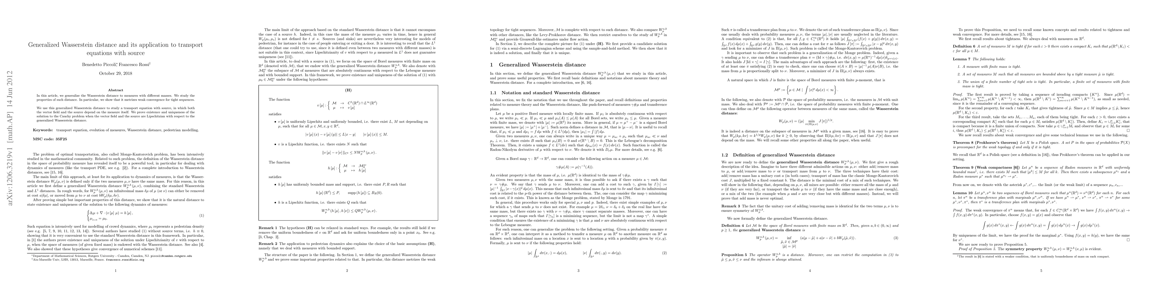 This paper generalizes the Wasserstein distance for measures with different masses and demonstrates its ability to metrize weak convergence for tight sequences. It then applies this generalized distance to study transport equations with source, proving existence and uniqueness of solutions under Lipschitzian conditions.
