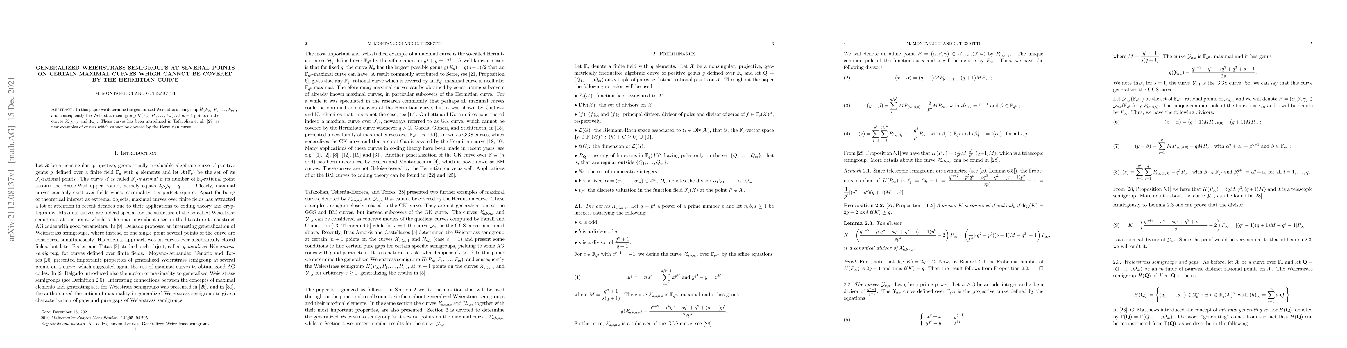 This paper determines the generalized Weierstrass semigroup $ \widehat{H}(P_{\infty}, P_1, \ldots , P_{m})$ and the Weierstrass semigroup $H(P_{\infty}, P_1, \ldots , P_{m})$ at $m+1$ points on certain maximal curves $\mathcal{X}_{a,b,n,s}$ and $\mathcal{Y}_{n,s}$ that cannot be covered by the Hermitian curve.
