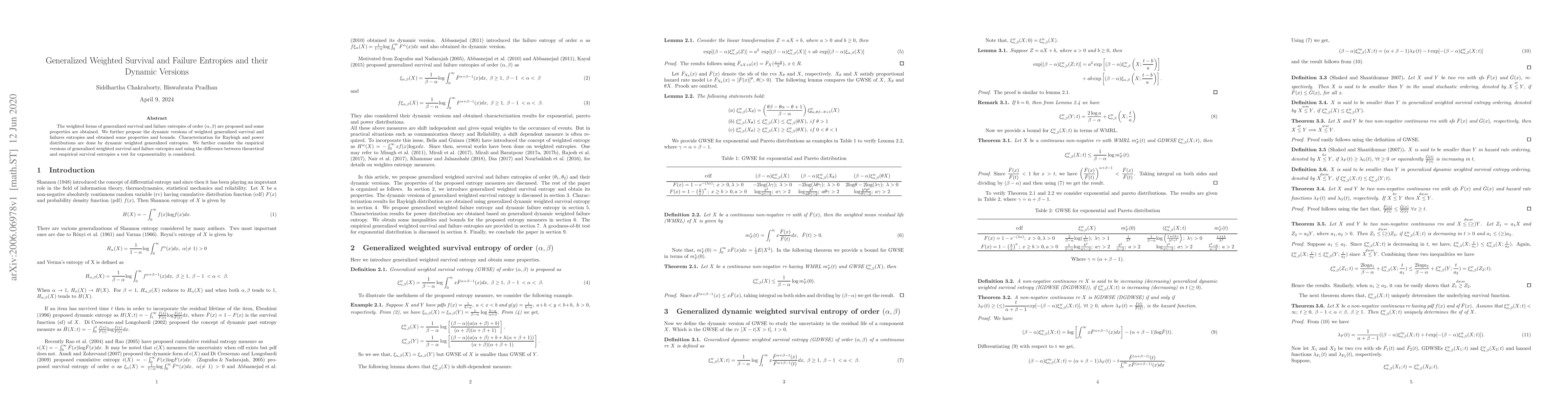 The weighted forms of generalized survival and failure entropies of order ($\alpha,\beta$) are proposed and some properties are obtained. We further propose the dynamic versions of weighted generalized survival and failures entropies and obtained some properties and bounds. Characterization for Rayleigh and power distributions are done by dynamic weighted generalized entropies. We further consider the empirical versions of generalized weighted survival and failure entropies and using the difference between theoretical and empirical survival entropies a test for exponentiality is considered.