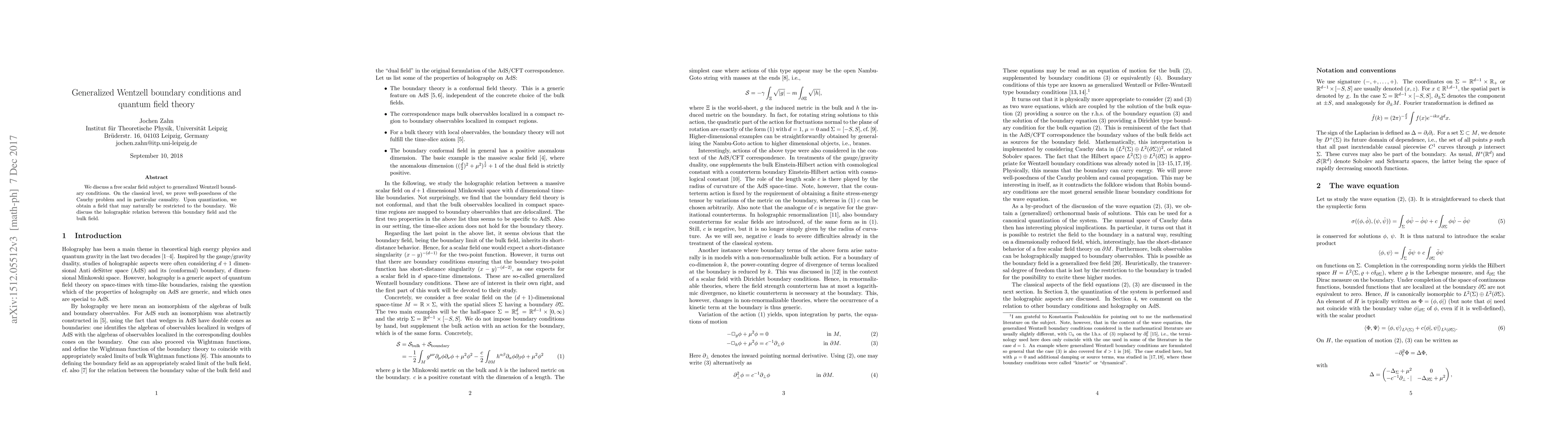 We discuss a free scalar field subject to generalized Wentzell boundary conditions. On the classical level, we prove well-posedness of the Cauchy problem and in particular causality. Upon quantization, we obtain a field that may naturally be restricted to the boundary. We discuss the holographic relation between this boundary field and the bulk field.