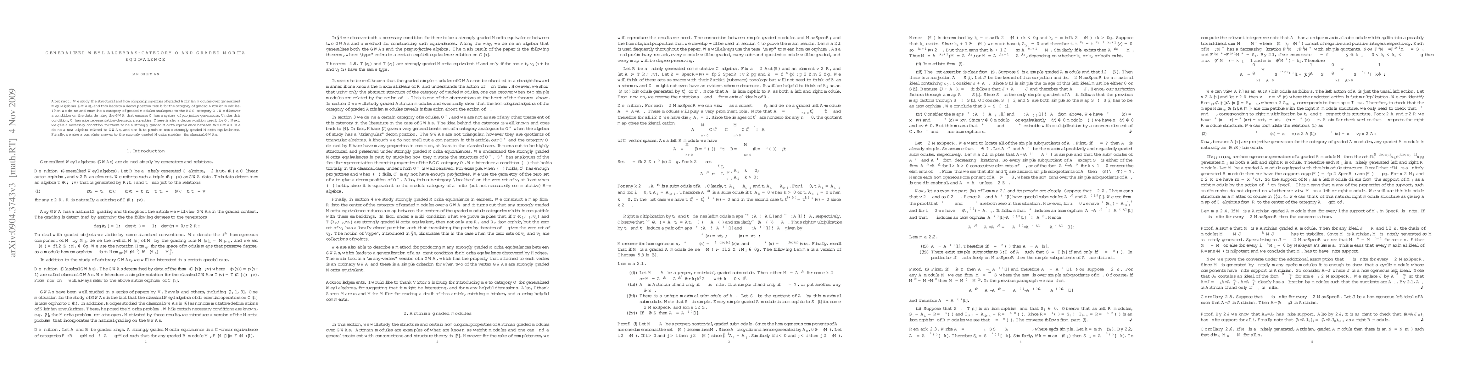 We study the structural and homological properties of graded Artinian modules over generalized Weyl algebras (GWAs), and this leads to a decomposition result for the category of graded Artinian modules. Then we define and examine a category of graded modules analogous to the BGG category O. We discover a condition on the data defining the GWA that ensures O has a system of projective generators. Under this condition, O has nice representation-theoretic properties. There is also a decomposition result for O. Next, we give a necessary condition for there to be a strongly graded Morita equivalence between two GWAs. We define a new algebra related to GWAs, and use it to produce some strongly graded Morita equivalences. Finally, we give a complete answer to the strongly graded Morita problem for classical GWAs.
