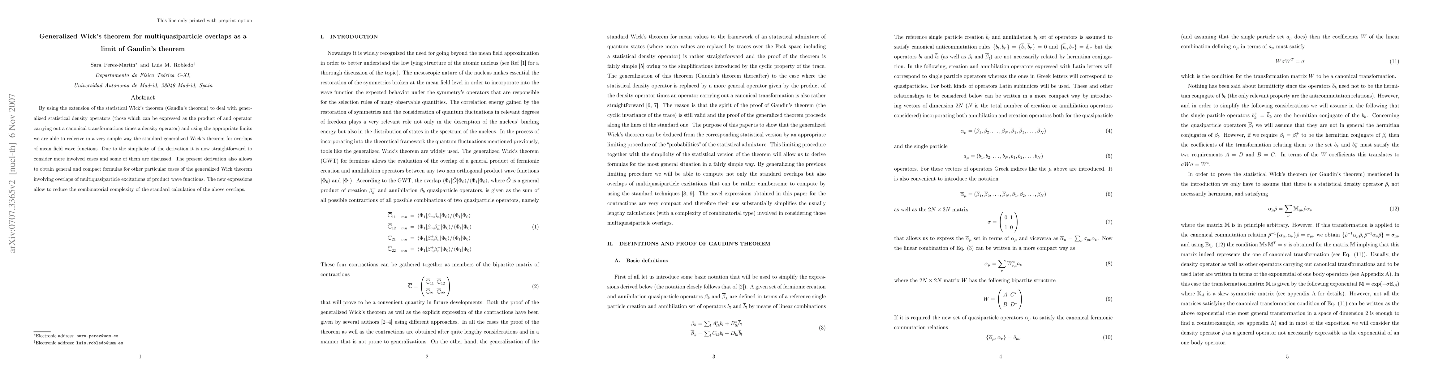 We are able to rederive in a very simple way the standard generalized Wick's theorem for overlaps of mean field wave functions by using the extension of the statistical Wick's theorem (Gaudin's theorem) in the appropriate limits.