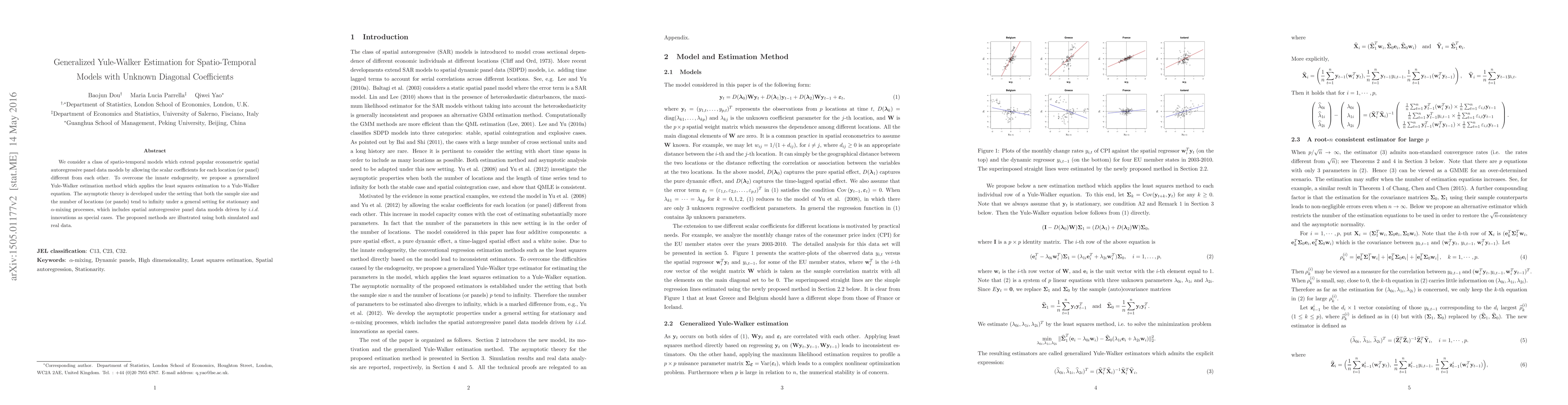 We consider a class of spatio-temporal models which extend popular econometric spatial autoregressive panel data models by allowing the scalar coefficients for each location (or panel) different from each other. To overcome the innate endogeneity, we propose a generalized Yule-Walker estimation method which applies the least squares estimation to a Yule-Walker equation. The asymptotic theory is developed under the setting that both the sample size and the number of locations (or panels) tend to infinity under a general setting for stationary and alpha-mixing processes, which includes spatial autoregressive panel data models driven by i.i.d. innovations as special cases. The proposed methods are illustrated using both simulated and real data.
