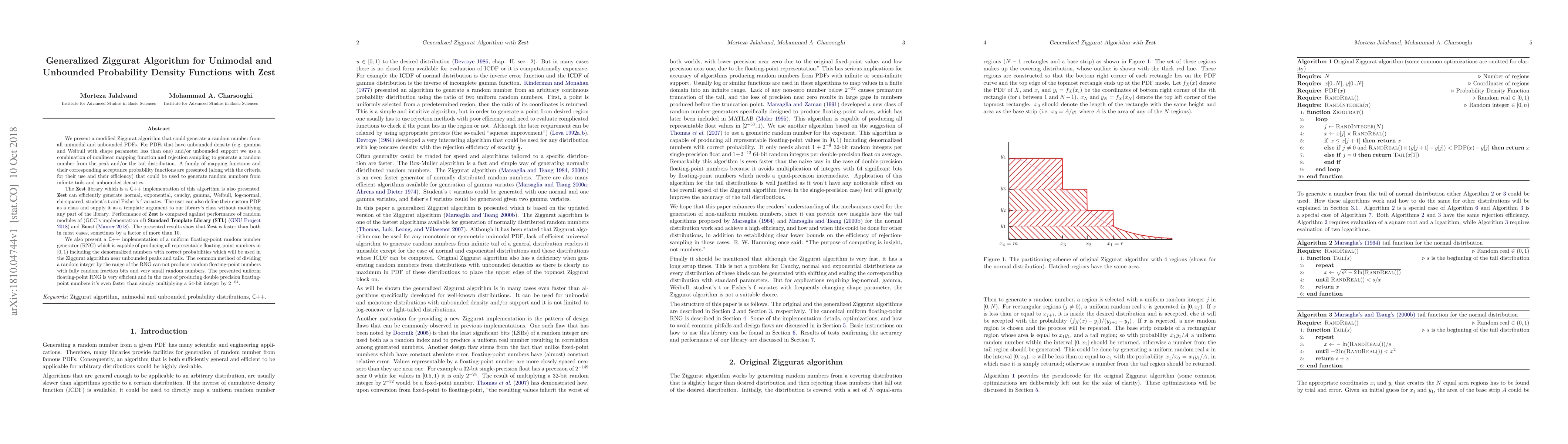 A novel algorithm called Ziggurat generates random numbers from unimodal and unbounded probability density functions with improved efficiency compared to existing methods.