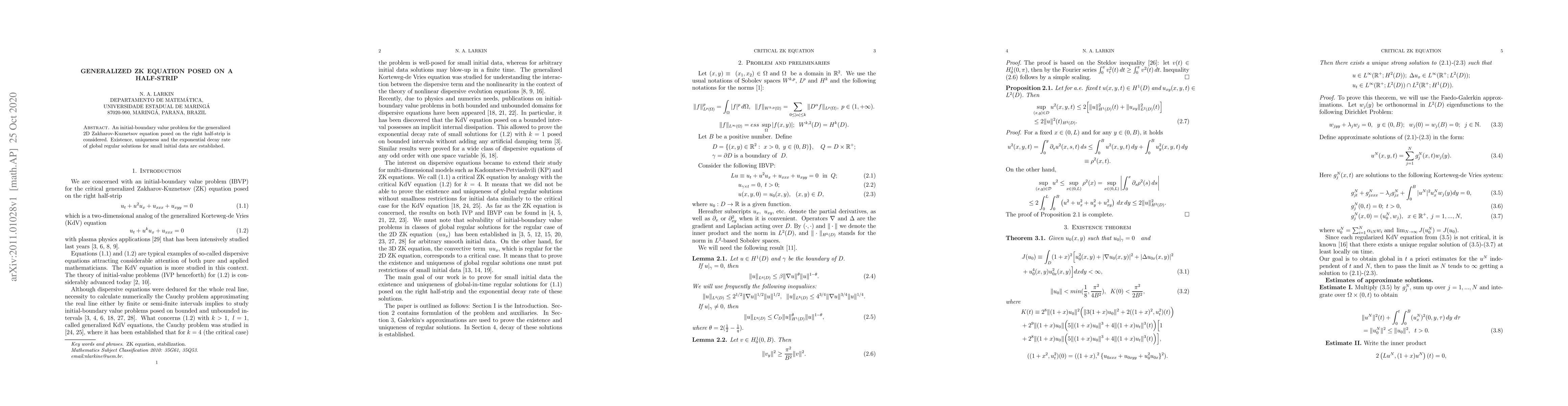 This paper investigates the existence, uniqueness, and exponential decay of global regular solutions for the generalized 2D Zakharov-Kuznetsov equation on the right half-strip, establishing results for small initial data. The study confirms the well-posedness of the initial-boundary value problem in this domain.