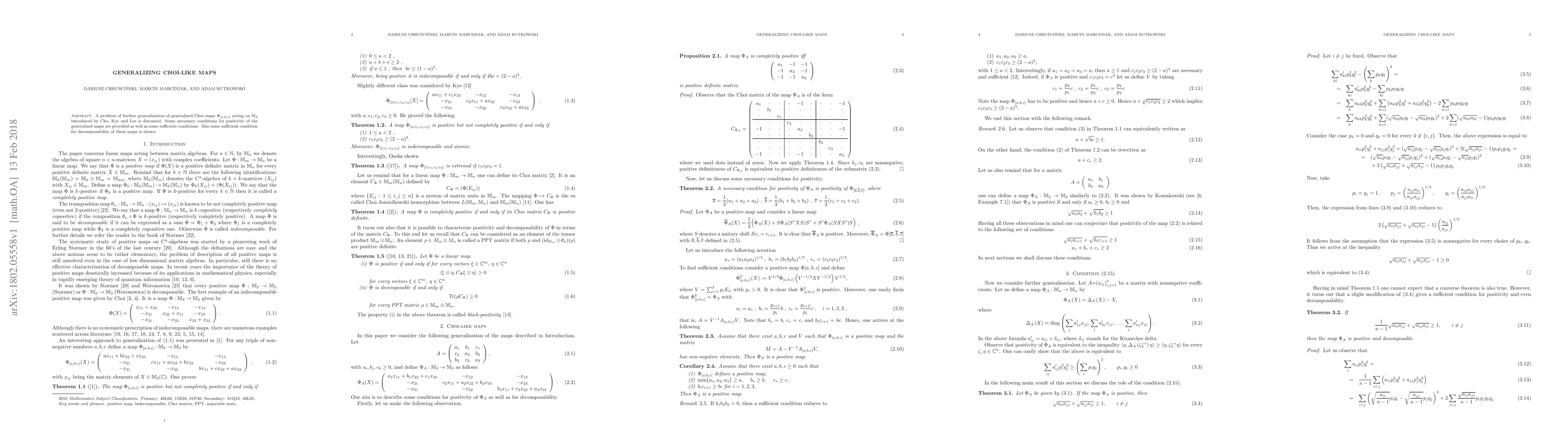This paper generalizes Choi-like maps $\Phi_{[a,b,c]}$ acting on $\mathbb{M}_3$ and provides necessary and sufficient conditions for their positivity and decomposability.
