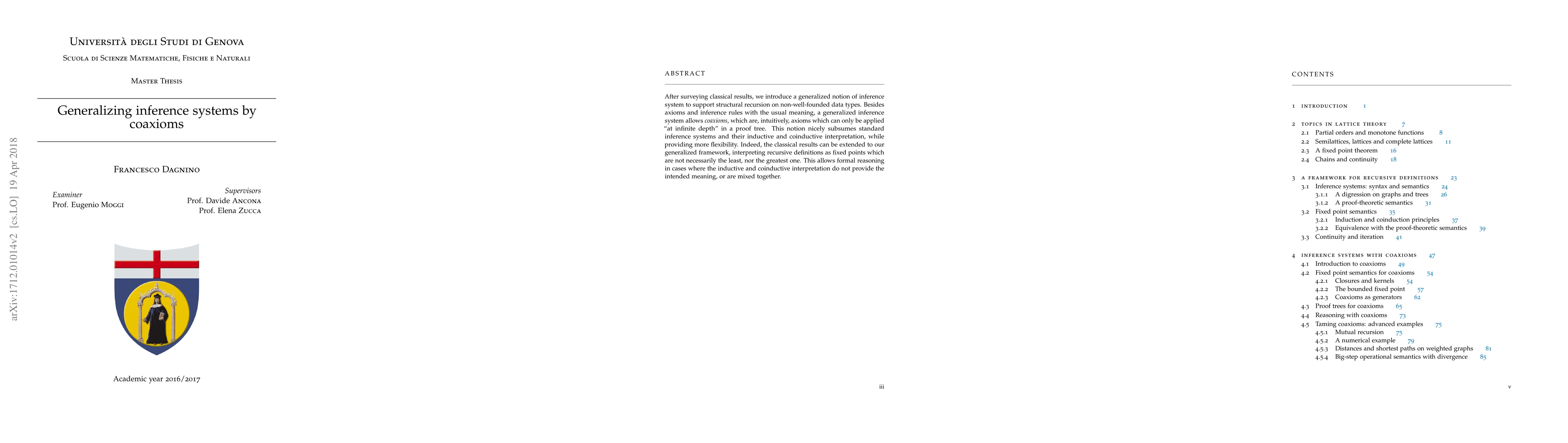 After surveying classical results, we introduce a generalized notion of inference system to support structural recursion on non-well-founded data types. Besides axioms and inference rules with the usual meaning, a generalized inference system allows coaxioms, which are, intuitively, axioms which can only be applied "at infinite depth" in a proof tree. This notion nicely subsumes standard inference systems and their inductive and coinductive interpretation, while providing more flexibility. Indeed, the classical results can be extended to our generalized framework, interpreting recursive definitions as fixed points which are not necessarily the least, nor the greatest one. This allows formal reasoning in cases where the inductive and coinductive interpretation do not provide the intended meaning, or are mixed together.