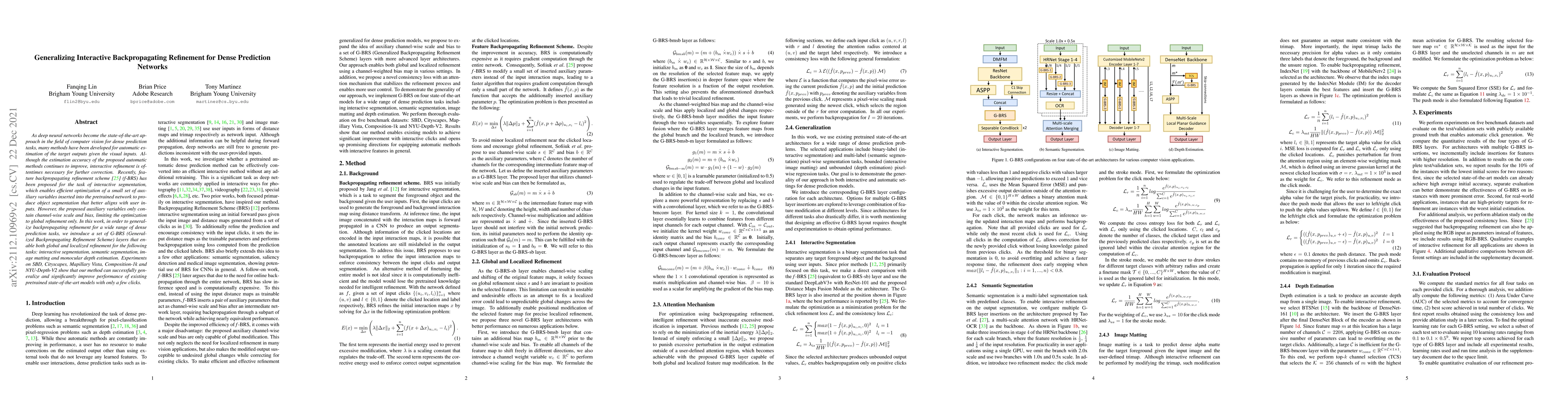 This paper introduces G-BRS (Generalized Backpropagating Refinement Scheme) layers to enhance the feature backpropagating refinement scheme for dense prediction tasks. The proposed method allows both global and localized refinement, significantly improving performance across interactive segmentation, semantic segmentation, image matting, and monocular depth estimation with minimal user input.