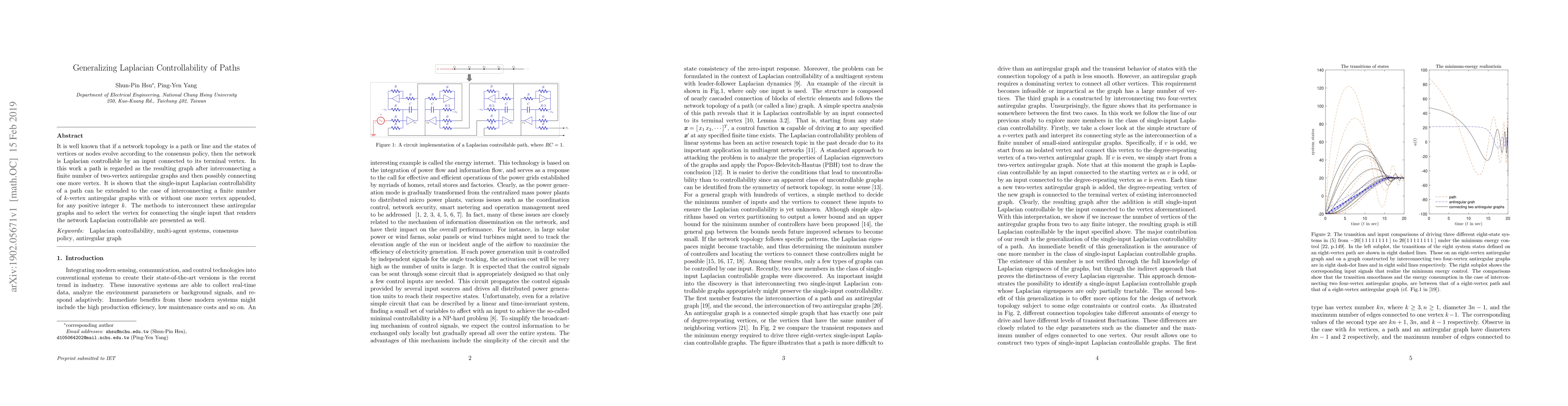 It is well known that if a network topology is a path or line and the states of vertices or nodes evolve according to the consensus policy, then the network is Laplacian controllable by an input connected to its terminal vertex. In this work a path is regarded as the resulting graph after interconnecting a finite number of two-vertex antiregular graphs and then possibly connecting one more vertex. It is shown that the single-input Laplacian controllability of a path can be extended to the case of interconnecting a finite number of $k$-vertex antiregular graphs with or without one more vertex appended, for any positive integer $k$. The methods to interconnect these antiregular graphs and to select the vertex for connecting the single input that renders the network Laplacian controllable are presented as well.