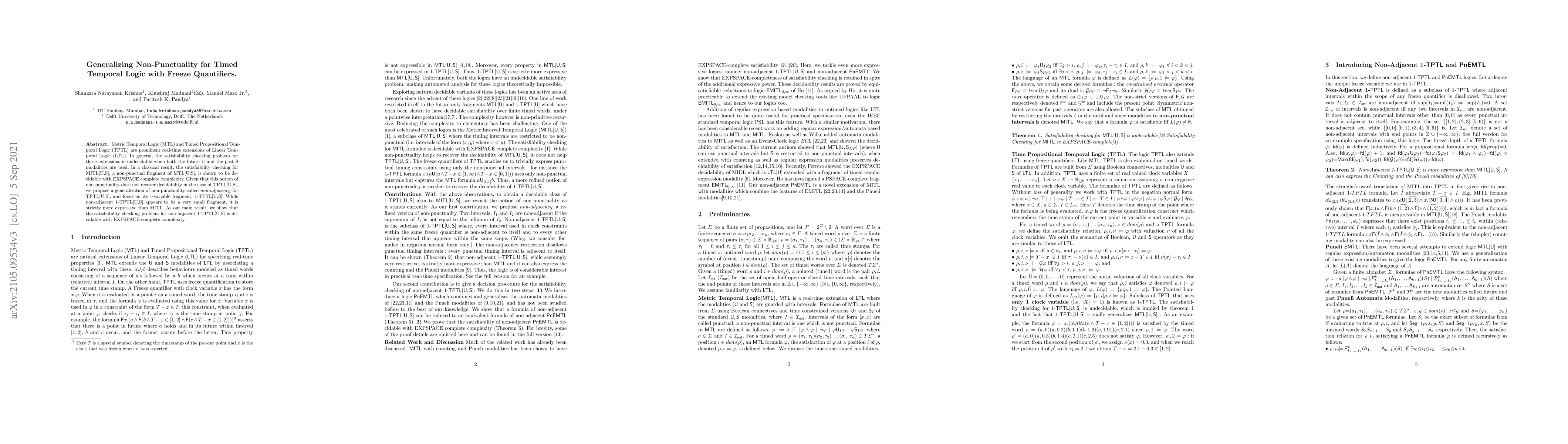 This paper generalizes the concept of non-punctuality to Timed Propositional Temporal Logic (TPTL) with future and past modalities, introducing "non adjacency" to achieve decidability. The satisfiability checking problem for the 1-variable fragment of this logic is shown to be decidable with EXPSPACE complexity.