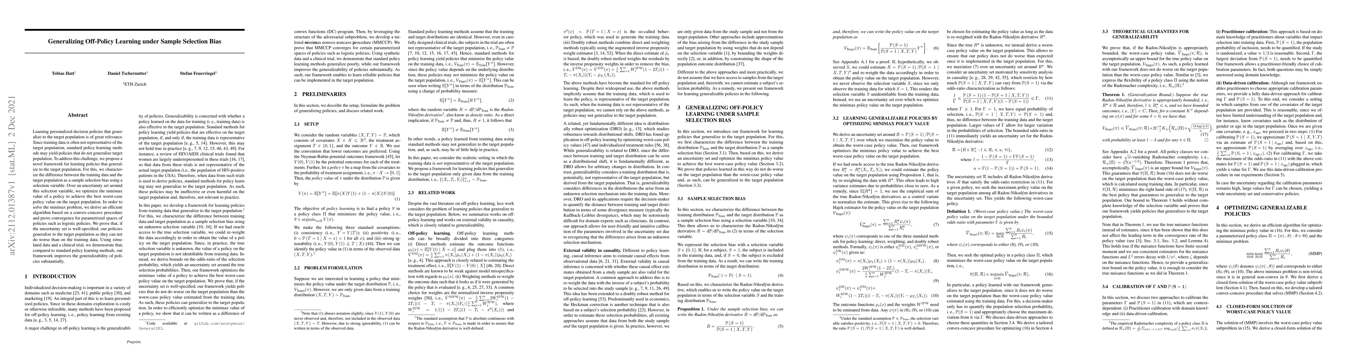 This research paper proposes a framework to learn personalized decision policies that generalize to the target population, addressing sample selection bias. It demonstrates significant improvements in generalizability over standard policy learning methods using simulated data and a clinical trial.