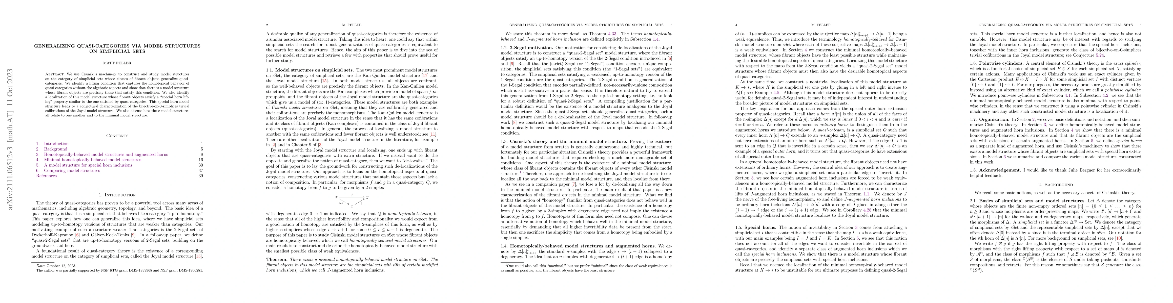 This paper constructs model structures on simplicial sets that generalize quasi-categories, identifying a lifting condition that captures their homotopical behavior. It also introduces a localization with a "special horn lifting" condition and discusses its relation to the Joyal model structure and the minimal model structure.