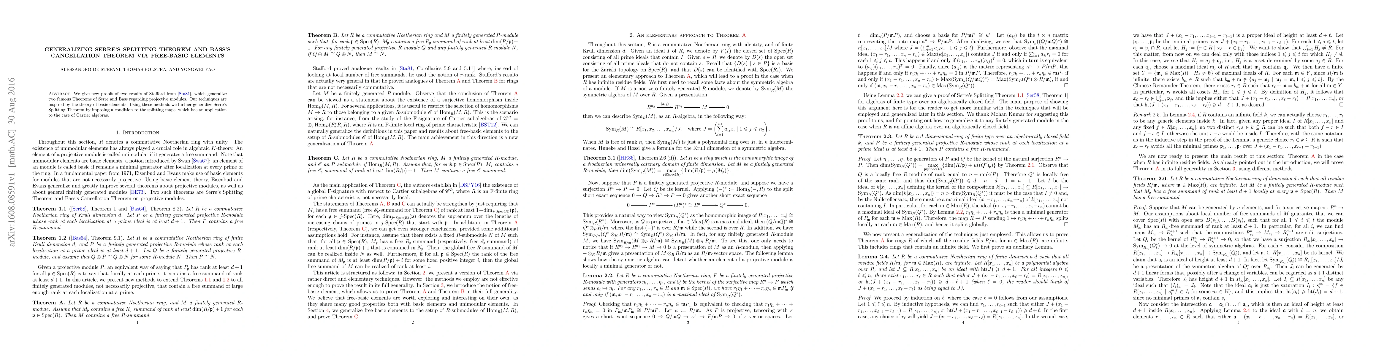 We give new proofs of two results of Stafford, which generalize two famous Theorems of Serre and Bass regarding projective modules. Our techniques are inspired by the theory of basic elements. Using these methods we further generalize Serre's Splitting Theorem by imposing a condition to the splitting maps, which has an application to the case of Cartier algebras.