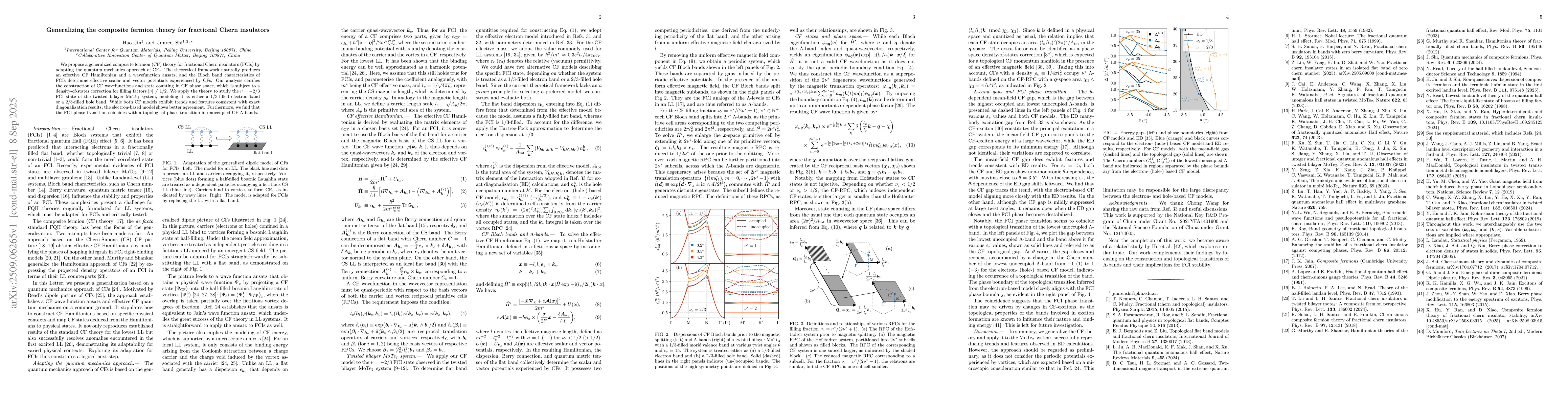 We propose a generalized composite fermion (CF) theory for fractional Chern insulators (FCIs) by adapting the quantum mechanics approach of CFs. The theoretical framework naturally produces an effective CF Hamiltonian and a wavefunction ansatz, and the Bloch band characteristics of FCIs determine effective scalar and vector potentials experienced by CFs. Our analysis clarifies the construction of CF wavefunctions and state counting in CF phase space, which is subject to a density-of-states correction for filling factors $|\nu| \neq 1/2$. We apply the theory to study the $\nu=-2/3$ FCI state of the twisted bilayer MoTe$_2$ system, modeling it as either a $1/3$-filled electron band or a $2/3$-filled hole band. While both CF models exhibit trends and features consistent with exact diagonalization results, the electron-based model shows better agreement. Furthermore, we find that the FCI phase transition coincides with a topological phase transition in unoccupied CF $\Lambda$-bands.