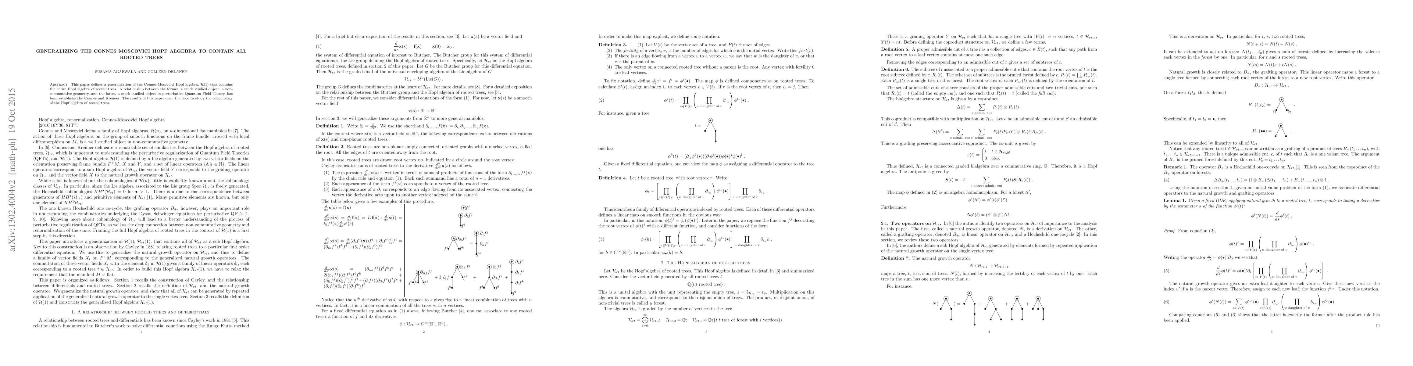This paper generalizes the Connes-Moscovici Hopf algebra, $\mathcal{H}(1)$, to incorporate the entire Hopf algebra of rooted trees, thus establishing a connection between non-commutative geometry and perturbative Quantum Field Theory, and paving the way for further study of the cohomology of rooted trees.