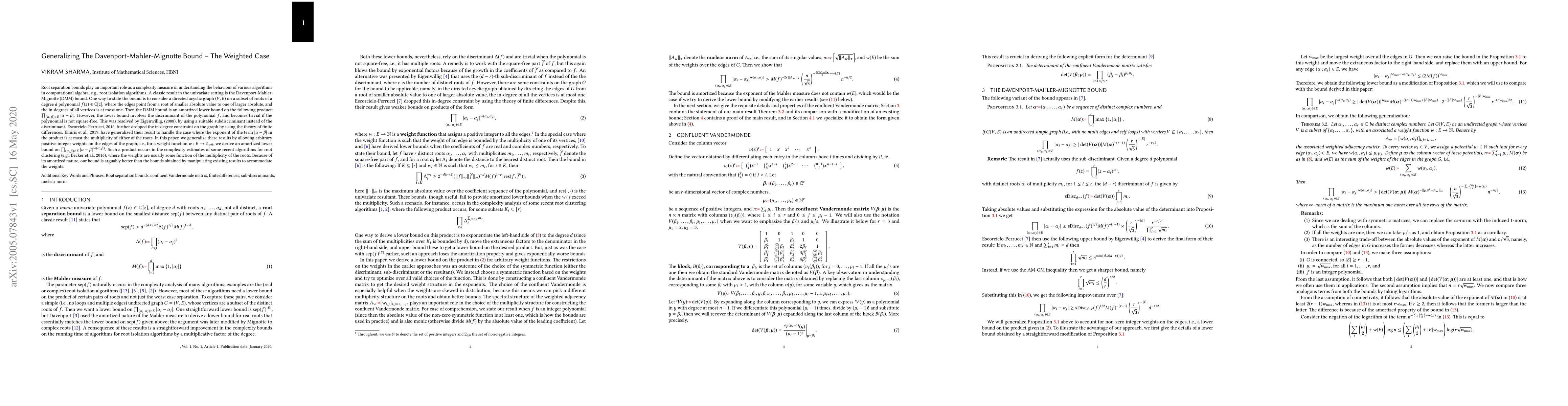 Root separation bounds play an important role as a complexity measure in understanding the behaviour of various algorithms in computational algebra, e.g., root isolation algorithms. A classic result in the univariate setting is the Davenport-Mahler-Mignotte (DMM) bound. One way to state the bound is to consider a directed acyclic graph $(V,E)$ on a subset of roots of a degree $d$ polynomial $f(z) \in \mathbb{C}[z]$, where the edges point from a root of smaller absolute value to one of larger absolute, and the in-degrees of all vertices is at most one. Then the DMM bound is an amortized lower bound on the following product: $\prod_{(\alpha,\beta) \in E}|\alpha-\beta|$. However, the lower bound involves the discriminant of the polynomial $f$, and becomes trivial if the polynomial is not square-free. This was resolved by Eigenwillig, (2008), by using a suitable subdiscriminant instead of the discriminant. Escorcielo-Perrucci, 2016, further dropped the in-degree constraint on the graph by using the theory of finite differences. Emiris et al., 2019, have generalized their result to handle the case where the exponent of the term $|\alpha-\beta|$ in the product is at most the multiplicity of either of the roots. In this paper, we generalize these results by allowing arbitrary positive integer weights on the edges of the graph, i.e., for a weight function $w: E \rightarrow \mathbb{Z}_{>0}$, we derive an amortized lower bound on $\prod_{(\alpha,\beta) \in E}|\alpha-\beta|^{w(\alpha,\beta)}$. Such a product occurs in the complexity estimates of some recent algorithms for root clustering (e.g., Becker et al., 2016), where the weights are usually some function of the multiplicity of the roots. Because of its amortized nature, our bound is arguably better than the bounds obtained by manipulating existing results to accommodate the weights.